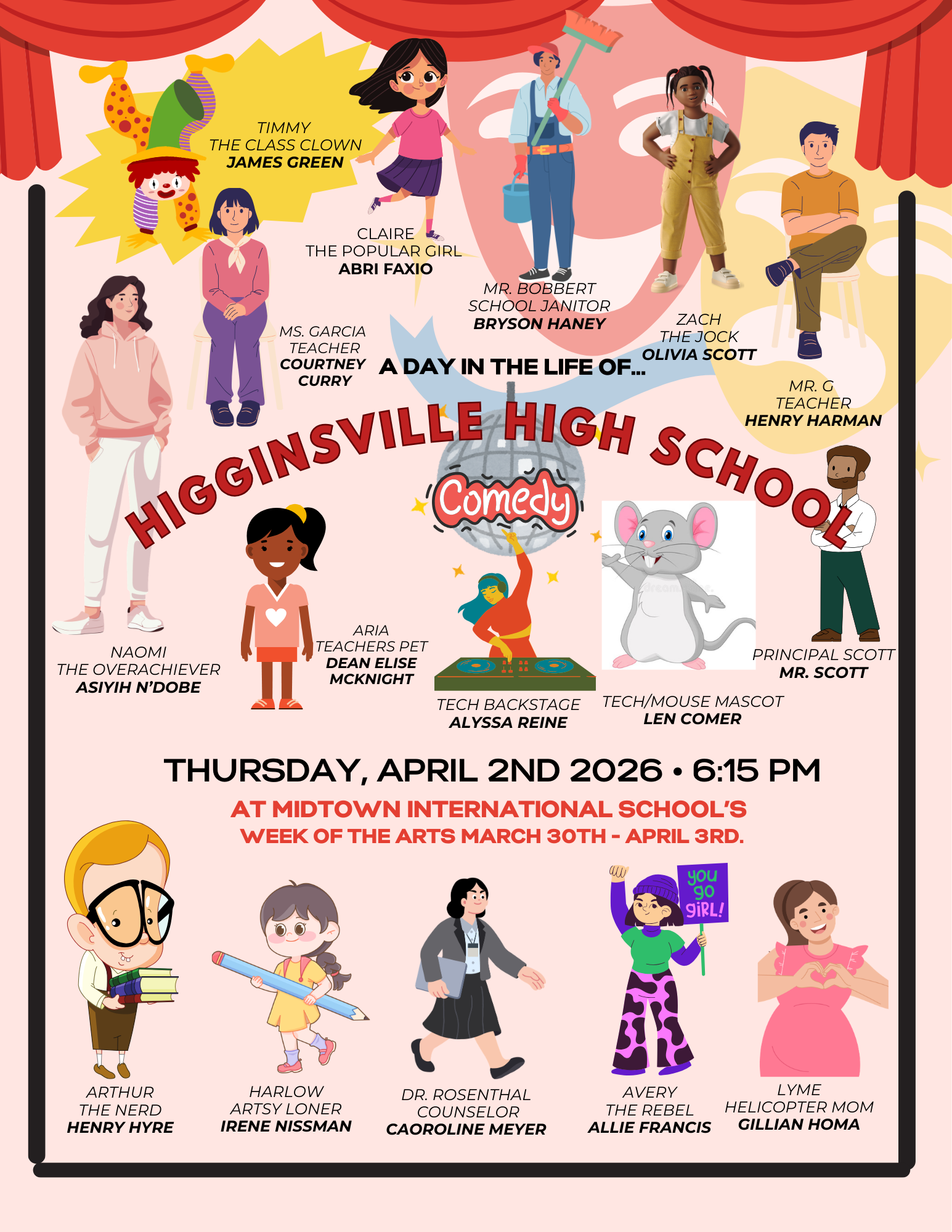 Mark you calendar! MIS theater will be showcasing their original comedy “A Day in the Life of Higginsville High School” during the Week of the Arts on Thursday, April 2nd at 6:15 p.m.