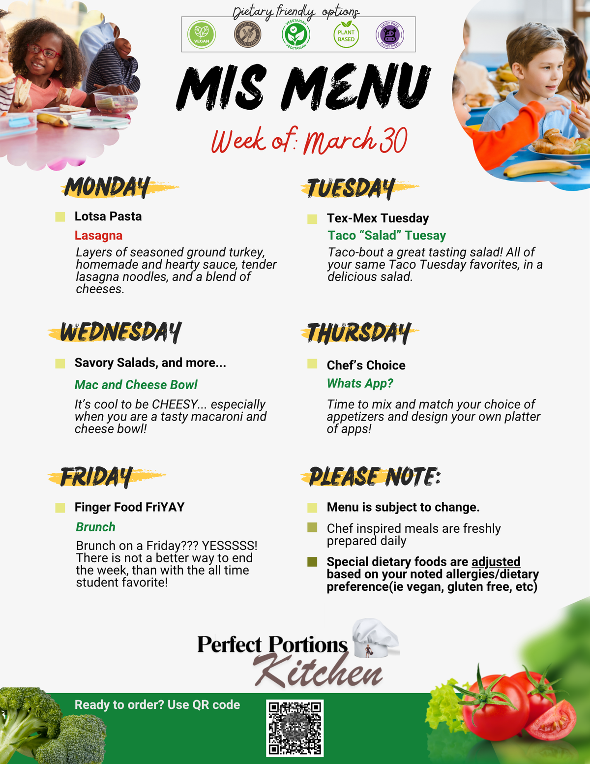 Check out next week’s menu below and place your lunch orders! If you have any questions, please reach out to Chef Tina directly at support@perfectportionsatl.coach